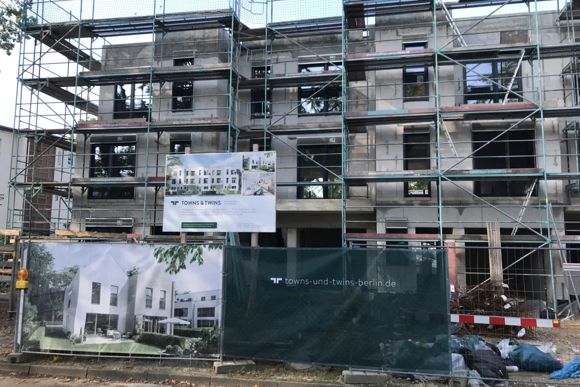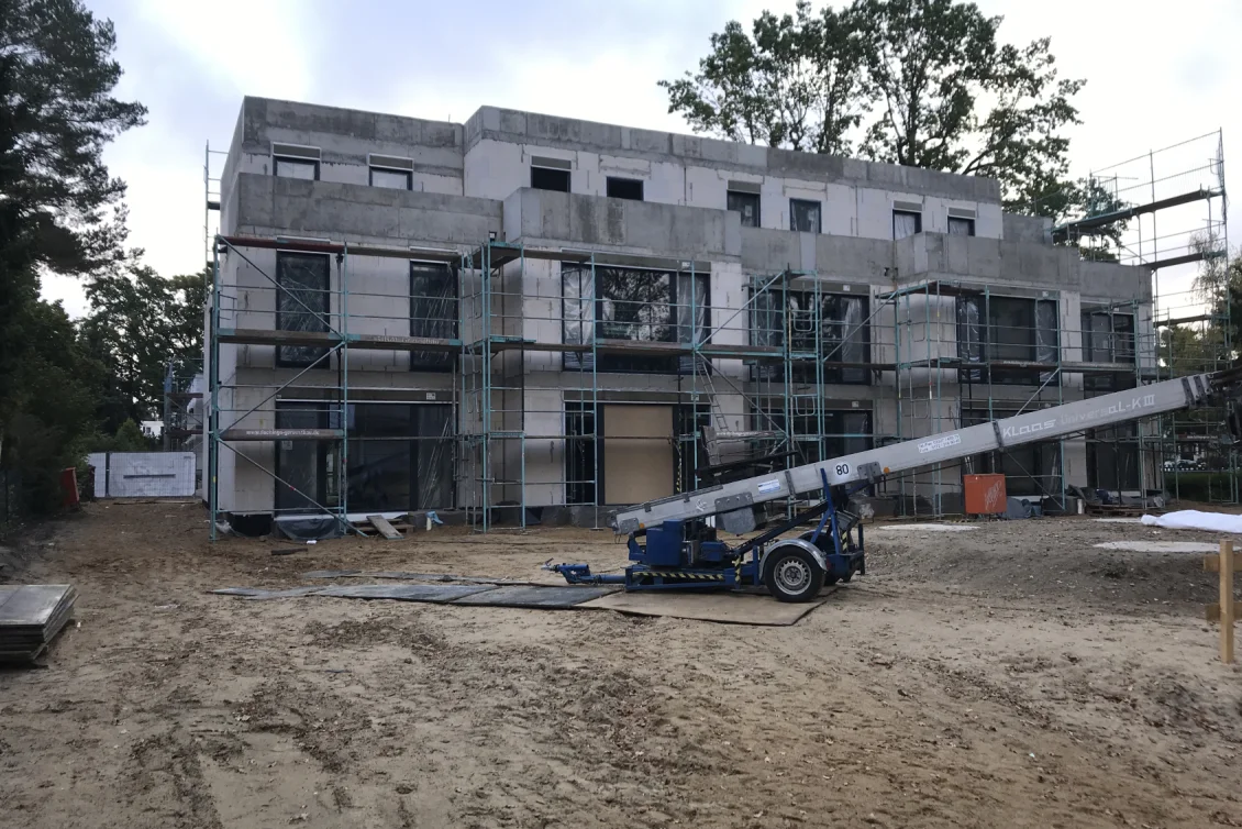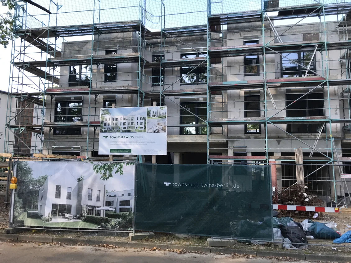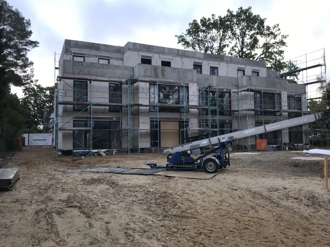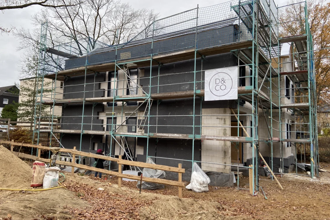 So wurden die Putzarbeiten in allen Häusern fertiggestellt und die Fassadenarbeiten wurden planmäßig fortgeführt. Ebenfalls konnte das Stellen der Unterkonstruktion inklusive einseitiger Beplankung in Townhouse 2 abgeschlossen werden.