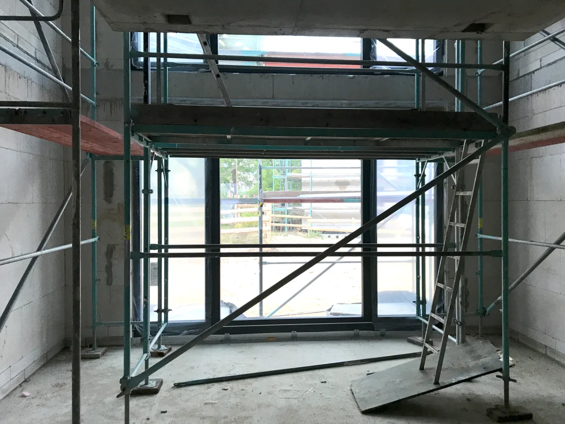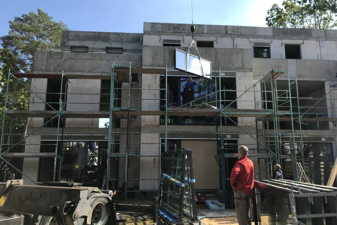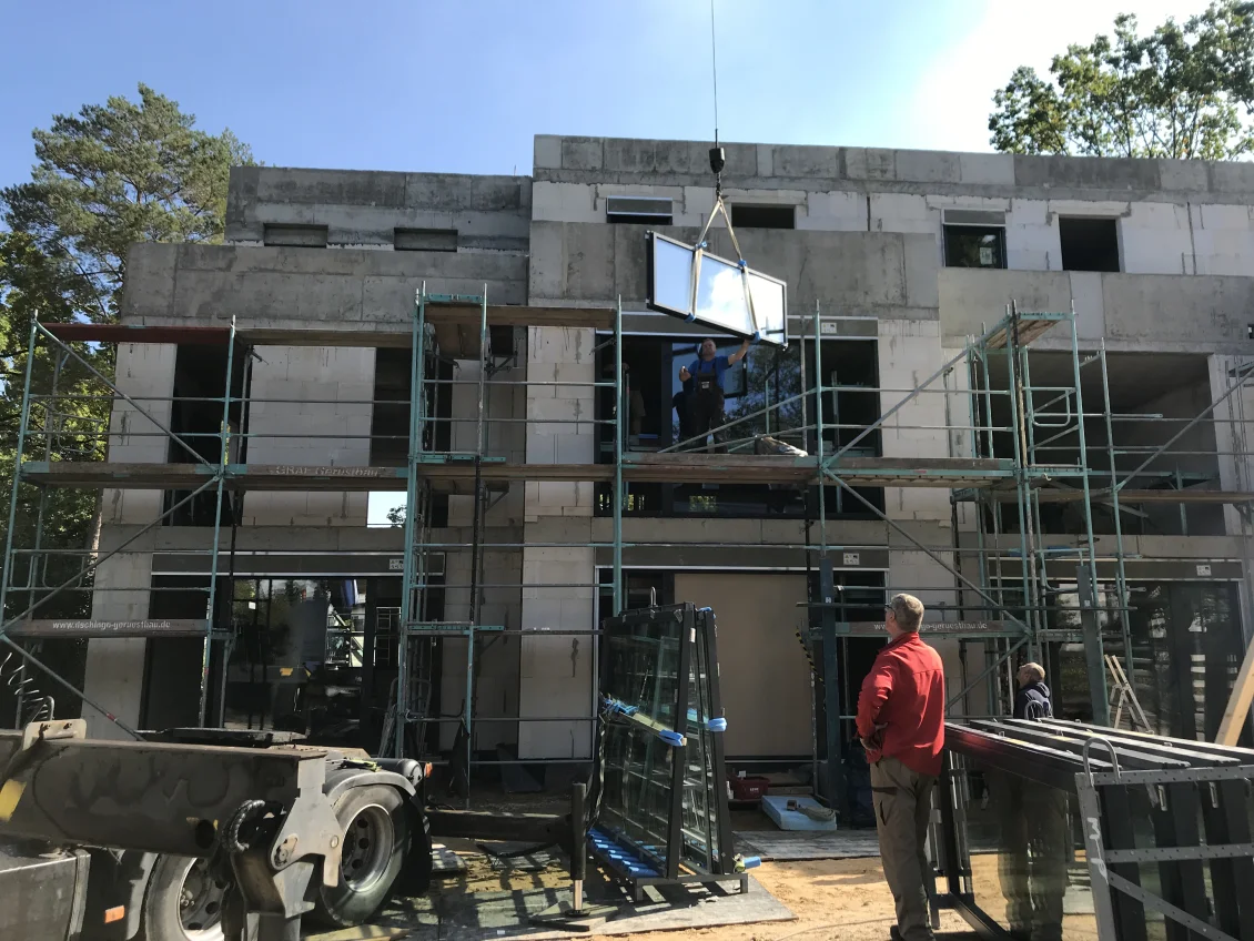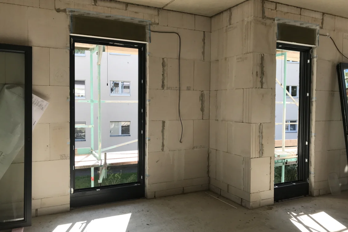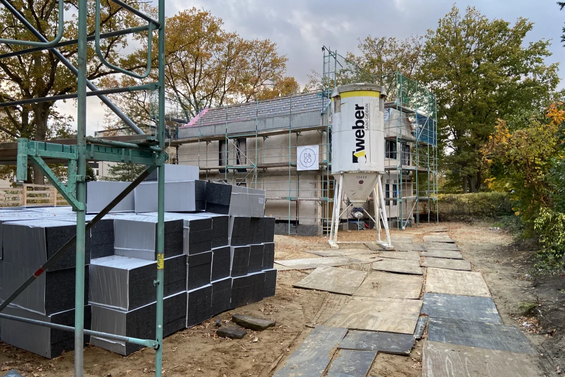 So wurden die Putzarbeiten in allen Häusern fertiggestellt und die Fassadenarbeiten wurden planmäßig fortgeführt. Ebenfalls konnte das Stellen der Unterkonstruktion inklusive einseitiger Beplankung in Townhouse 2 abgeschlossen werden.