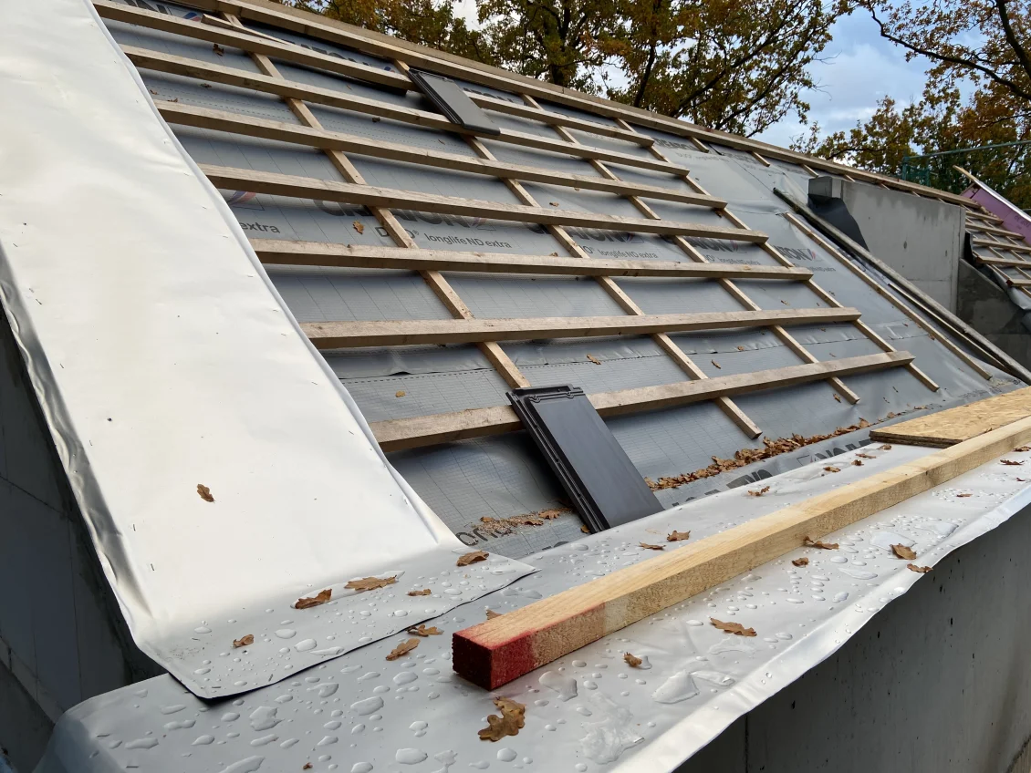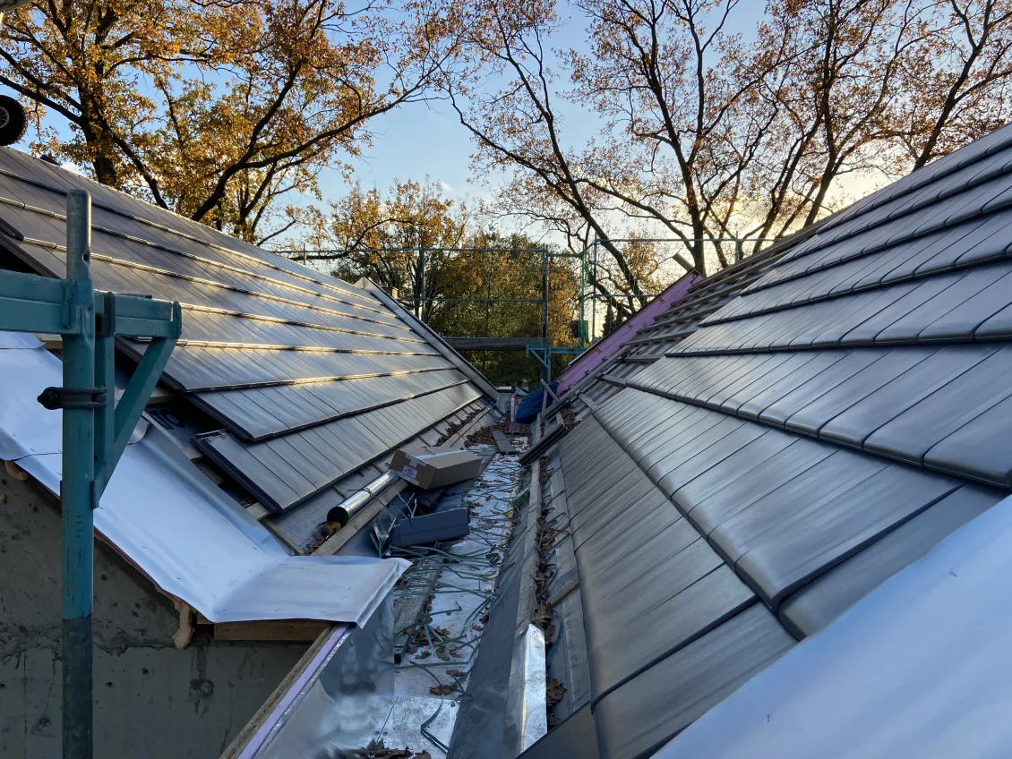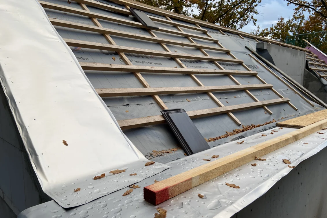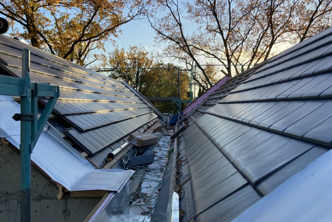 Bei den Twins sind die Dachdeckungsarbeiten fortgeschritten und die Verlegung der Dachziegel konnte vollständig abgeschlossen werden.