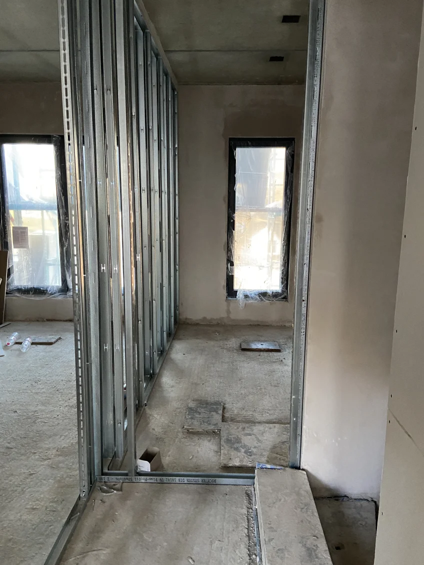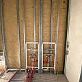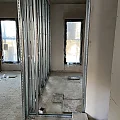 Die Woche lassen sich vielerlei Fortschritte bei den Town&Twins erkennen. Bei Townhouse 2 sind die Trockenbauarbeiten fortgesetzt worden, die Unterkonstruktionen inklusiver einseitiger Beplankung wurde aufgestellt. Daher konnten hier die Elektroarbeiten bereits beginnen. Ebenfalls gehen die Putzarbeiten bei Townhouse 5 zielorientiert weiter.