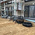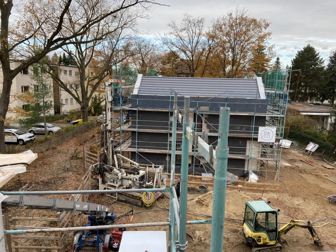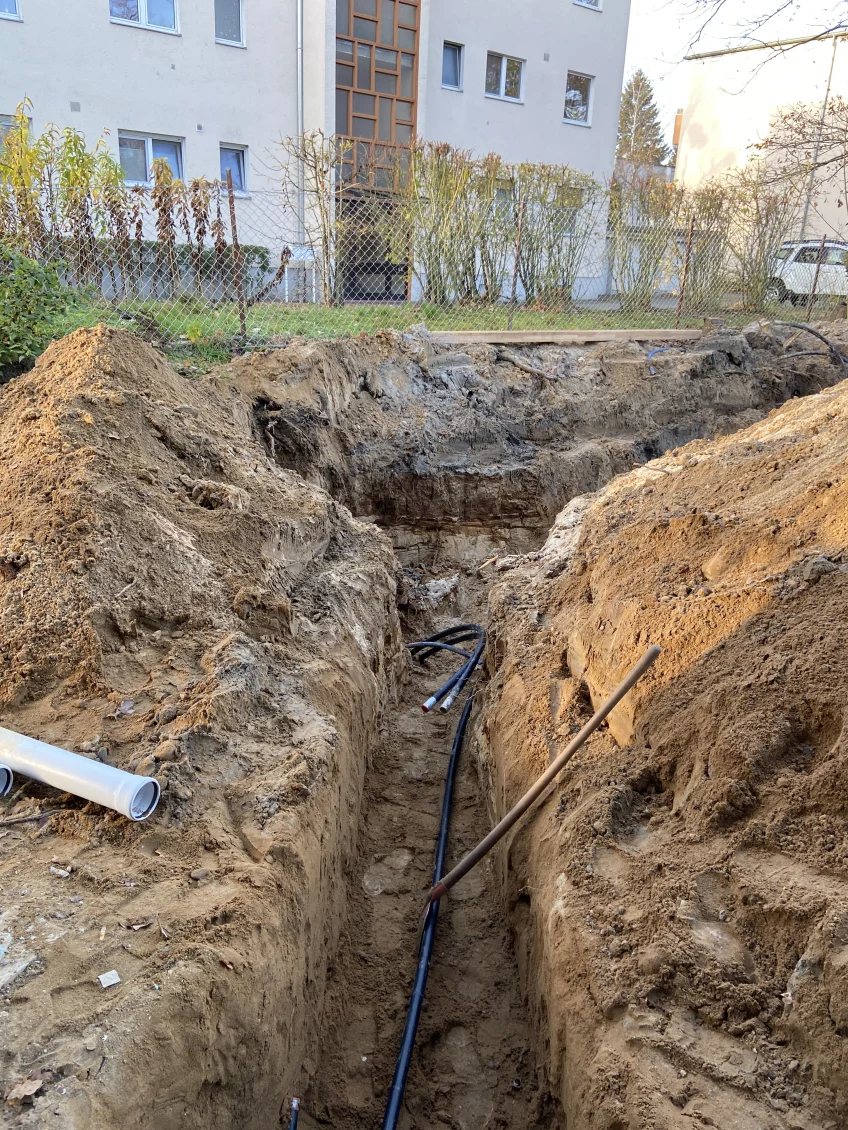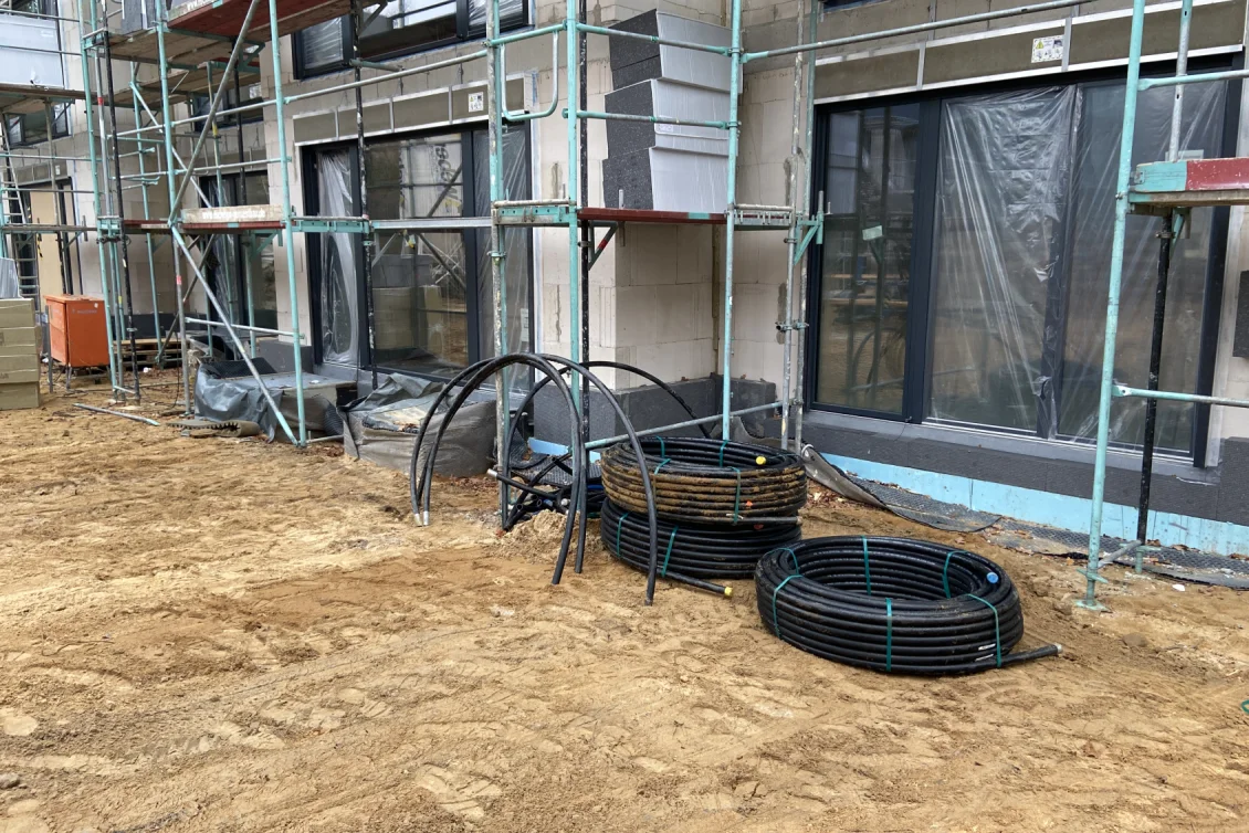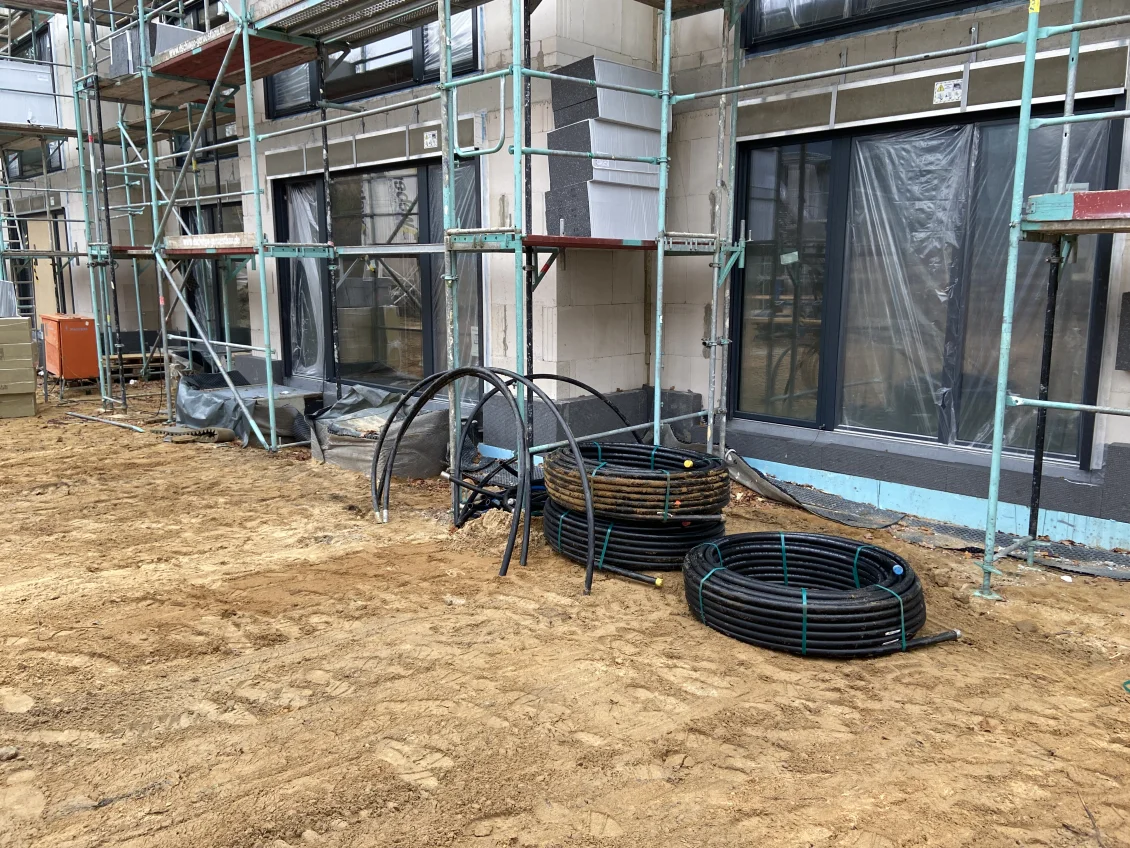 Die Erdwärmesonden wurden in Leerrohre eingebaut und in die Hausanschlussräume der jeweiligen Häuser verlegt. Sobald die Lieferung der Wärmepumpen eintrifft, können die Rohre angeschlossen werden. Diese moderne Heiztechnik der Towns&Twins ist deutlich klimafreundlicher, als andere Heizsysteme.