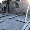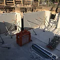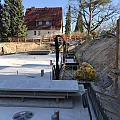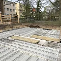 In dieser Woche wurden bei den Reihen- und Doppelhäusern die Deckenelemente in die Baustahlbügel der Wände eingebunden. Zugleich werden die Wände des Untergeschosses mit einem Bitumenvoranstrich versehen. Diese Technik schützt die erdberührenden Bauteile vor dem Eindringen von Feuchtigkeit.