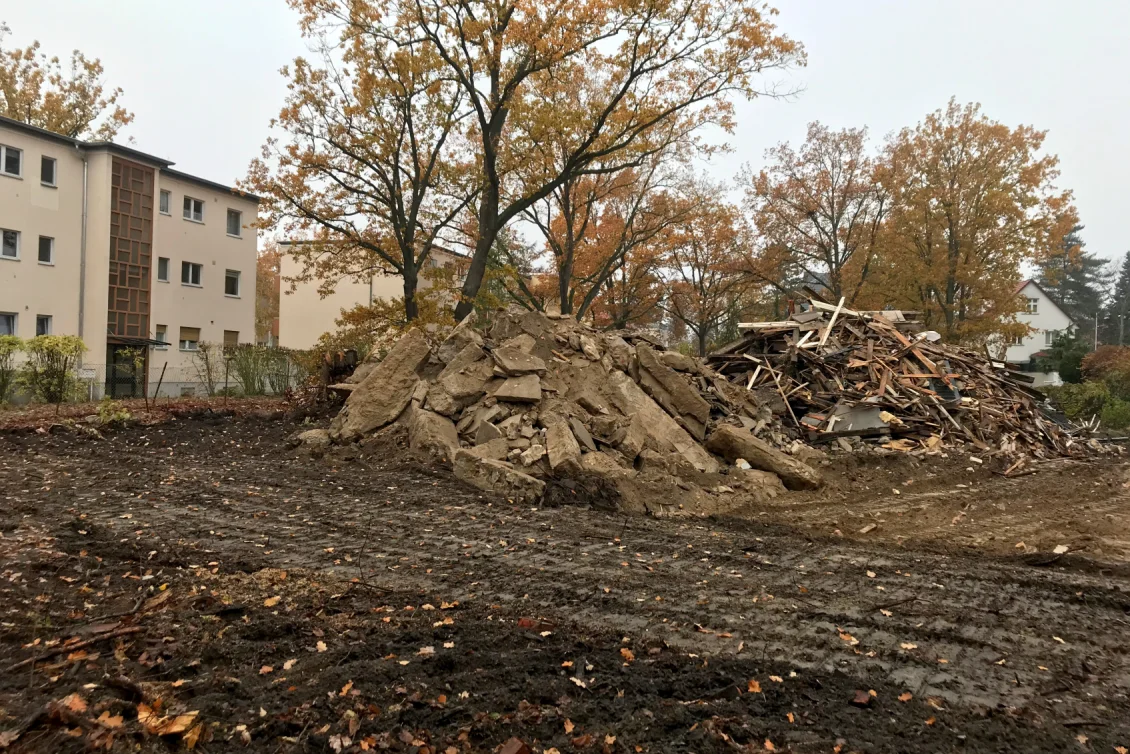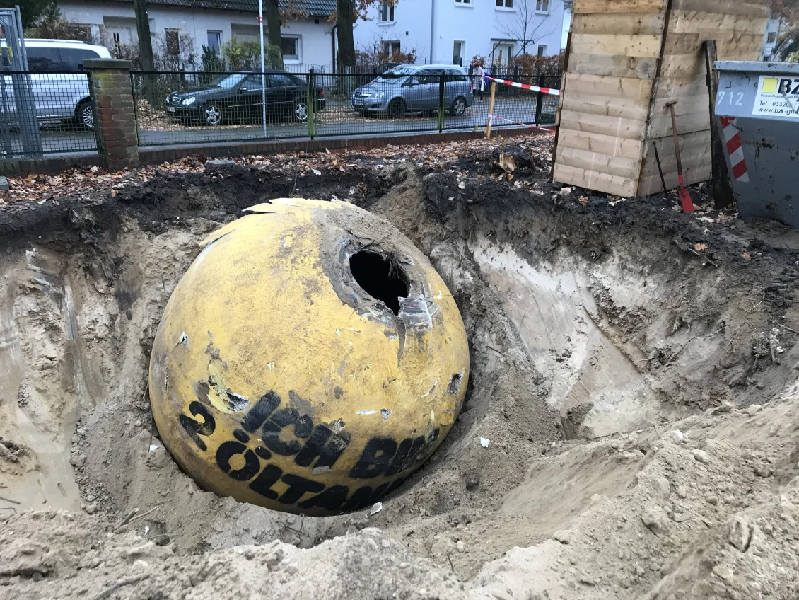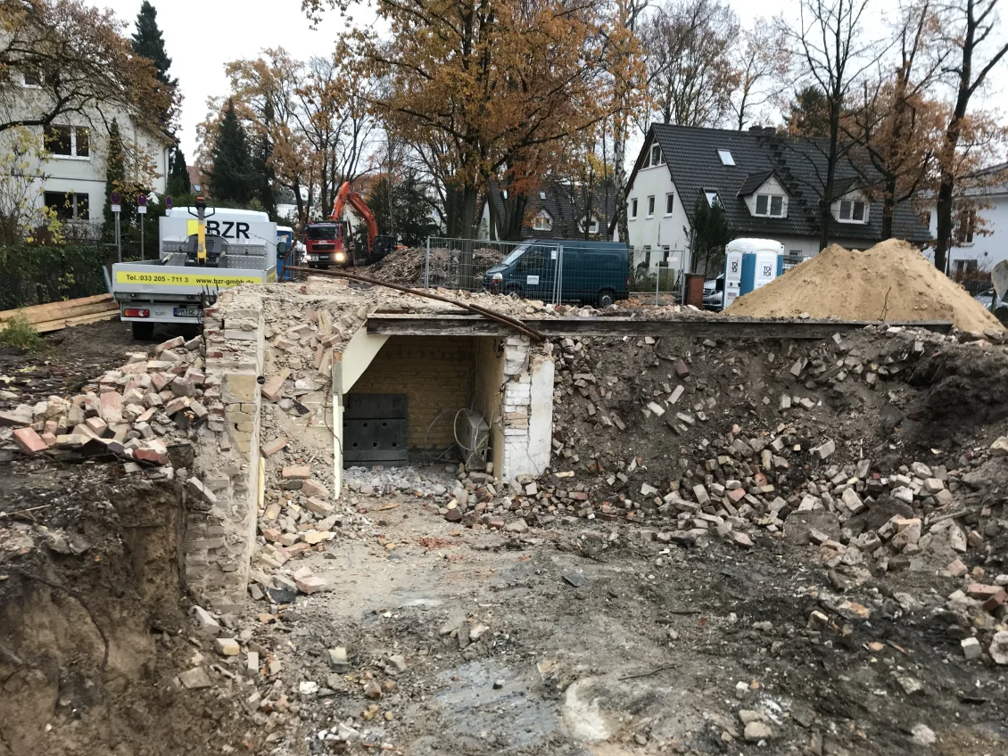 Die Abbrucharbeiten sind abgeschlossen und das überschüssige Material wird nach Wertstoffen getrennt abtransportiert. Der alte Öltank, auf den wir unter der Erde gestoßen sind, wurde TÜV-gerecht entleert, in seine Bestandteile zerlegt und entsorgt. Die Towns & Twins werden über Erdwärme beheizt, da haben fossile Brennstoffe nichts zu suchen.